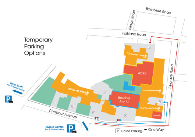 - Available Parking: All other TLH car parks remain open as usual. You can still park in the areas accessed via Chestnut Avenue, the TLH Carlton Hotel frontage, and the front section of the TLH Derwent Hotel car park (up to the barrier).